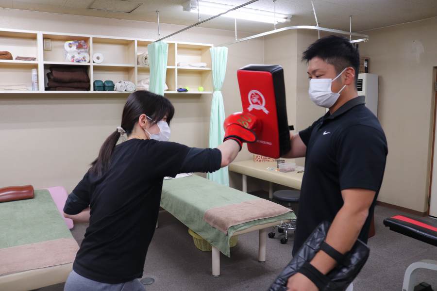 ふじた鍼灸整骨院では、ボディメイク・キックボクササイズを通して根本から改善やリハビリに繋がればと思い、日々丁寧に治療やトレーニングに取り組んでおります。一人ひとりの患者様に合わせた提案や治療法があるため、それぞれの方に向き合いご提案できればと考えております。不明点がないように丁寧に診察し、どのくらいの時間や何をしていくかのご提案まで行いますので、安心していただければと思います。